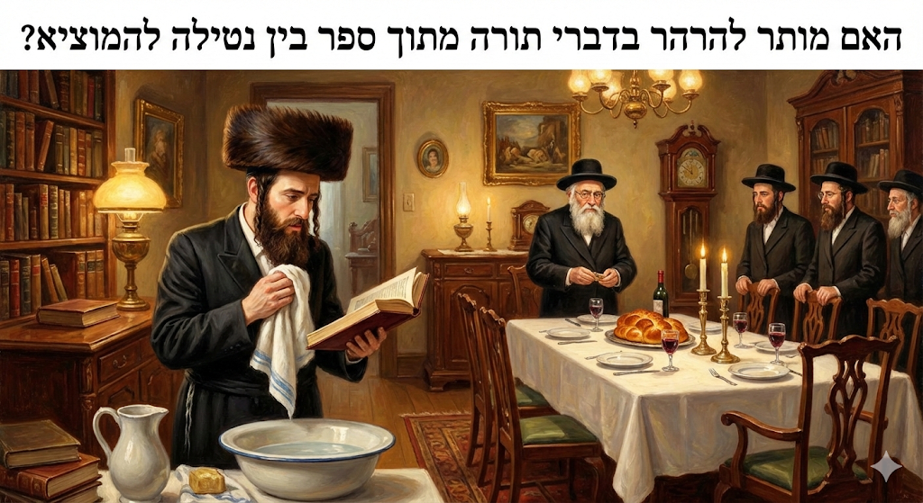 האם מותר לקרוא דברי תורה בהרהור בהסתכלות מתוך ספר בין נטילת ידים להמוציא בזמן שממתין לבעל הבית