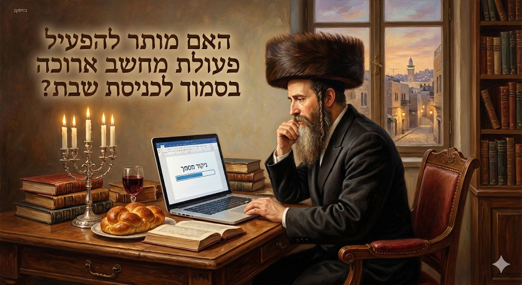 האם מותר להפעיל פעולת מחשב שלוקחת כמה שעות (כגון ניקוד מסמך) בסמוך לכניסת שבת